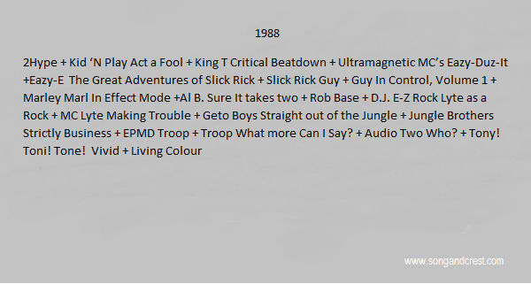 1988 hiphop Published March 20, 2014 at 600 × 321 in Is there a more influential era of Hiphop than1993-1994? ← Previous Next →
