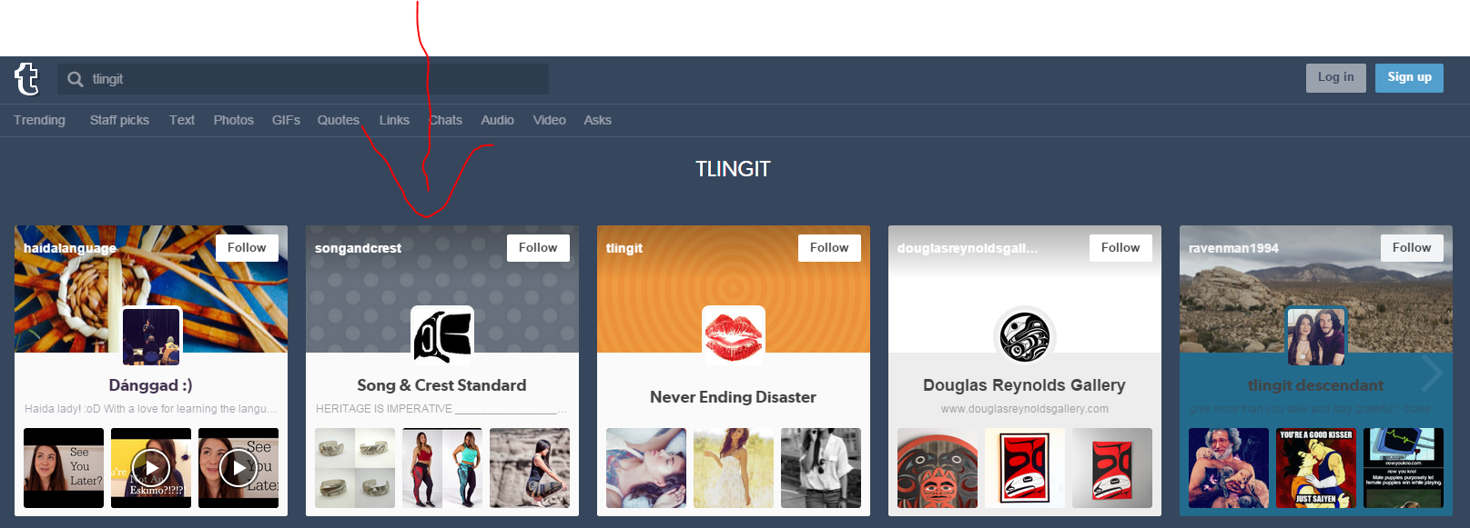 When you type in “TLINGIT” on the tumblr page Song and Crest Standard is the second page that appears highlighted at the top! I’m thrilled. If you haven’t already done so. Go on over to tumblr and follow.